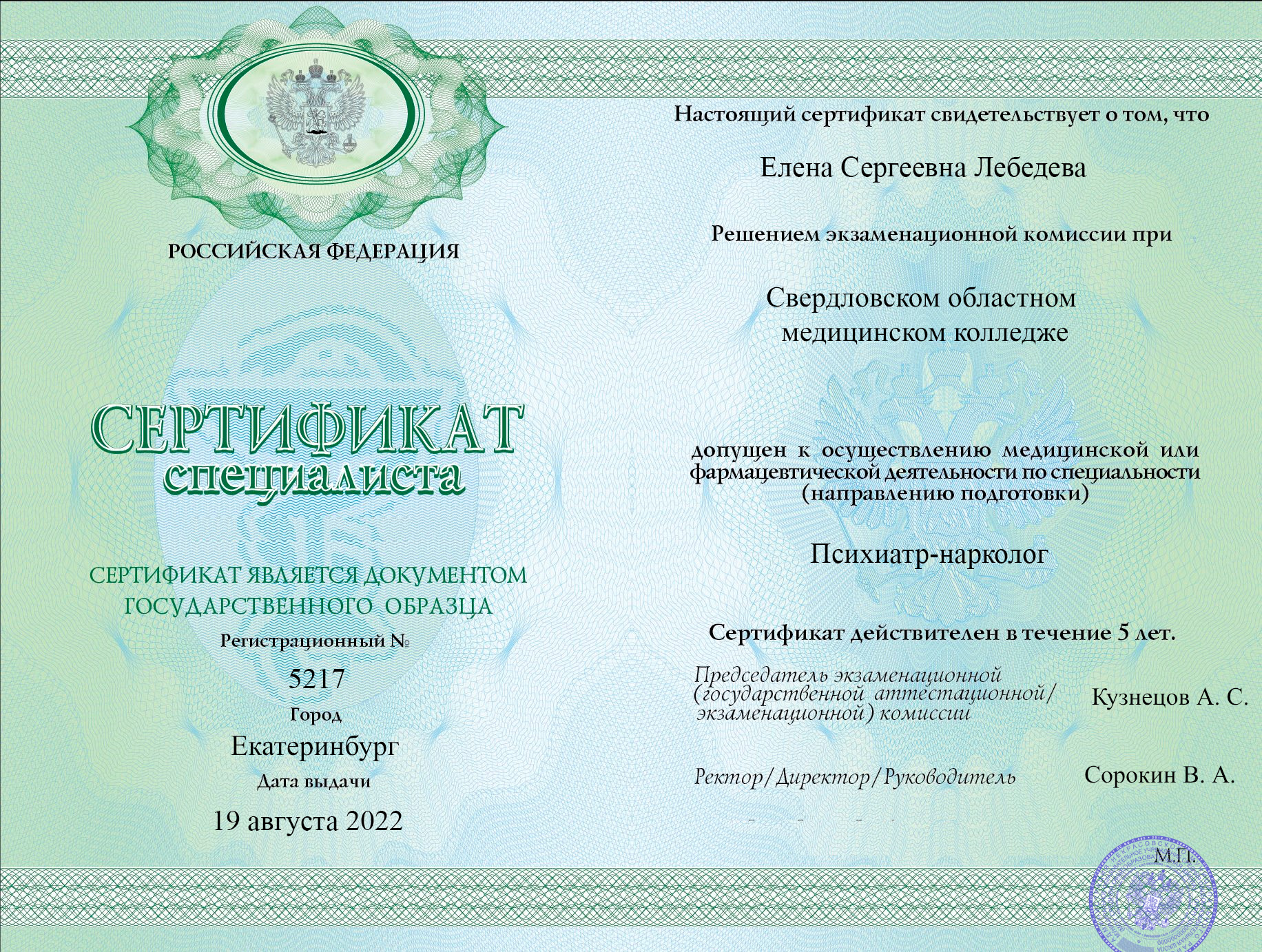Елена Сергеевна Лебедева врач нарколог клиники доктора Стукаловой в Белой Глине